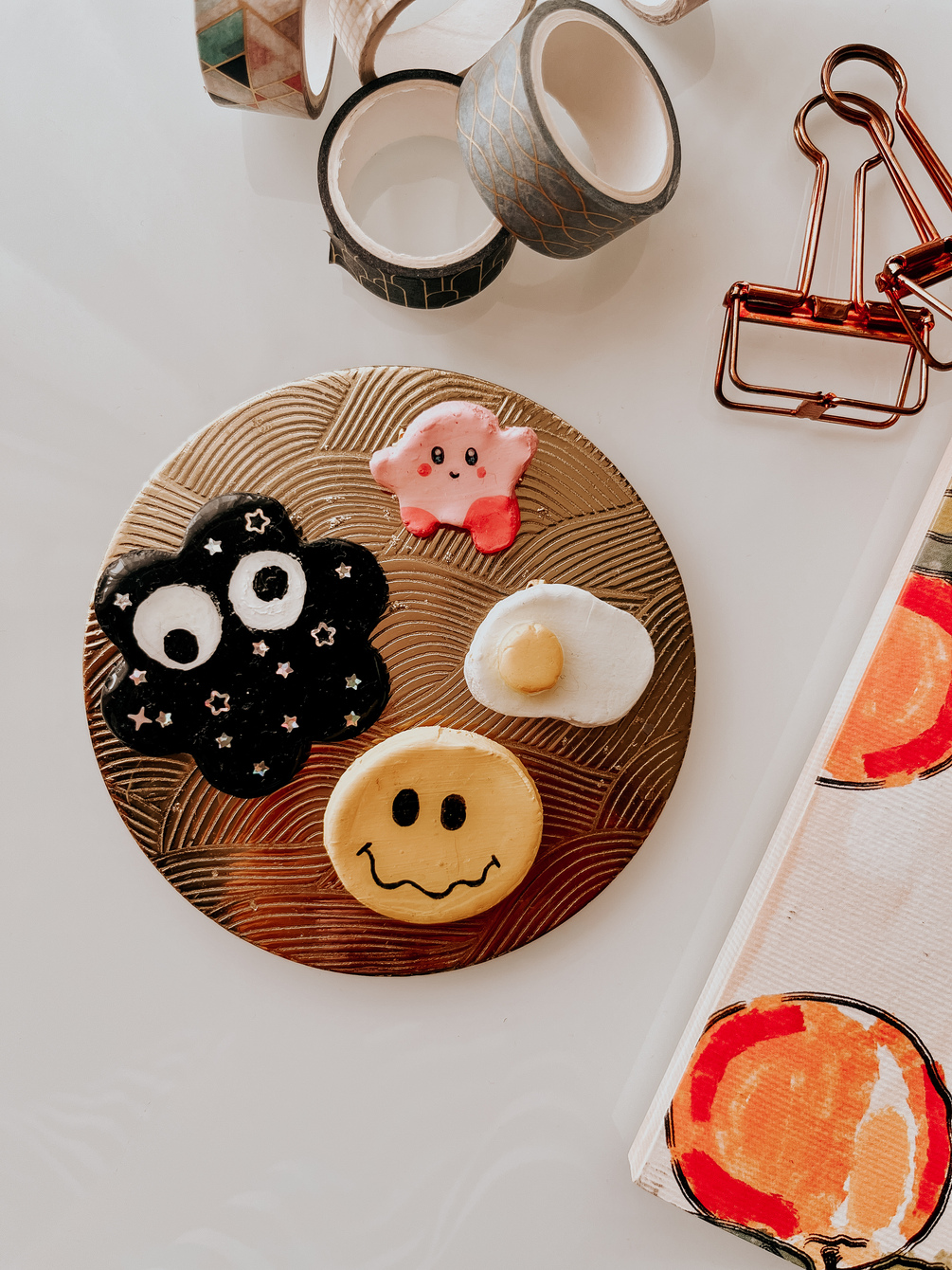 100% handmade clay pins—where craftsmanship meets creativity. 🎨✨ Immerse yourself in the tactile delight of each meticulously crafted piece, molded by hand and adorned with bespoke designs that speak to your unique style. 🌟